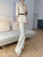 メリハリのあるスリムな仕立てが綺麗なパンツスーツセットです。