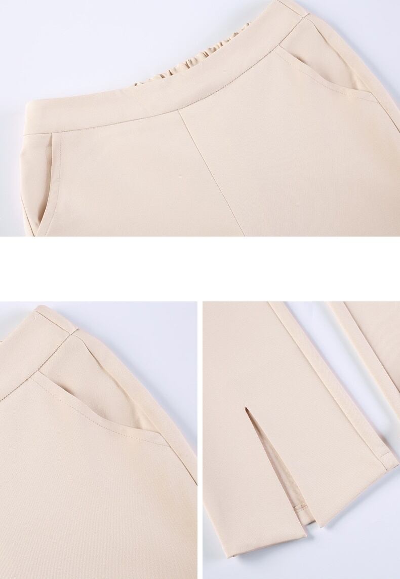 センタースリット入りの美脚効果抜群のセミフレアパンツの2点セットです。