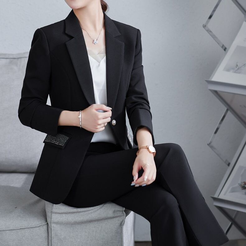 セットアップ スーツ パンツ ボトムス ジャケット 長袖 ロング スリット センタープレス ラインストーン セミフレア ハイウエスト ストレート 襟付き Vネック レトロ ビッグシルエット 韓国 スリム タイト きれいめ 高品質 大人 上品 ストレートパンツ フォーマル 秋 オータム 冬 ウィンター レディース 女性用 20代 30代 S M L XL 黒 ブラック 緑 大人カラー 秋カラー フェミニン オフィス プロフェッショナル エレガント OL グレー