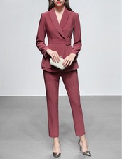 メリハリのあるウエストマーク仕立てのレトロなパンツスーツセットです。