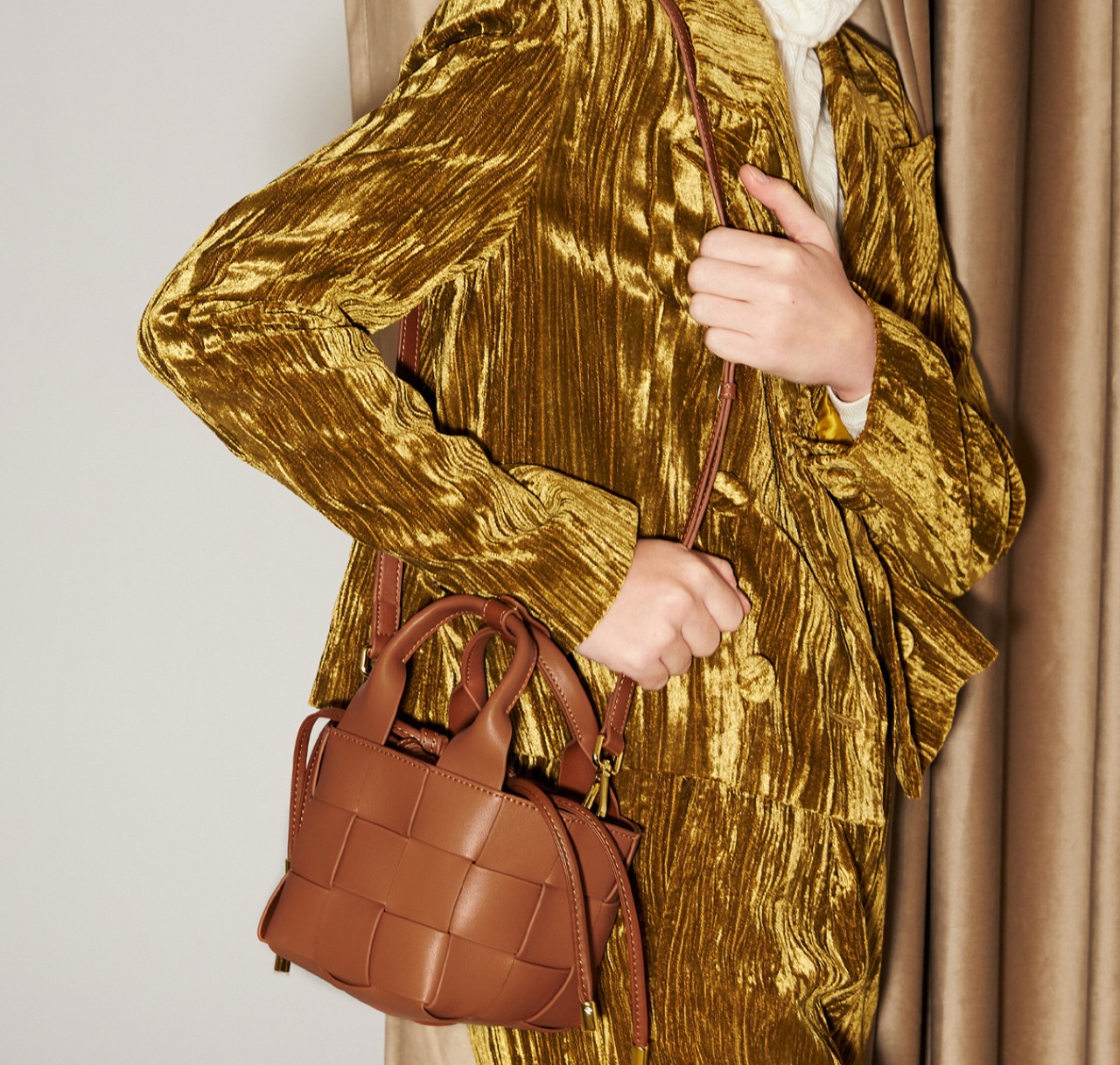 小さめで可愛い編み込みデザインのミニショルダーバッグ。
