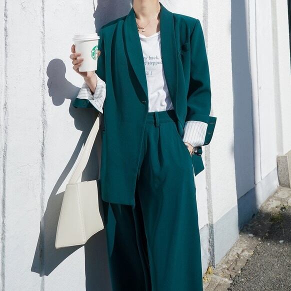 トレンドをおさえたオーバーサイズのレトロなパンツスーツセットです。
