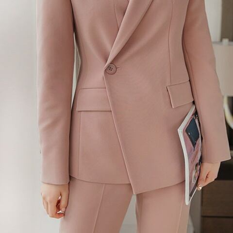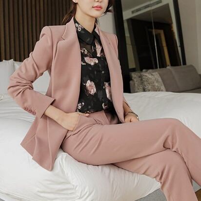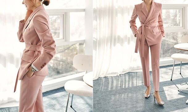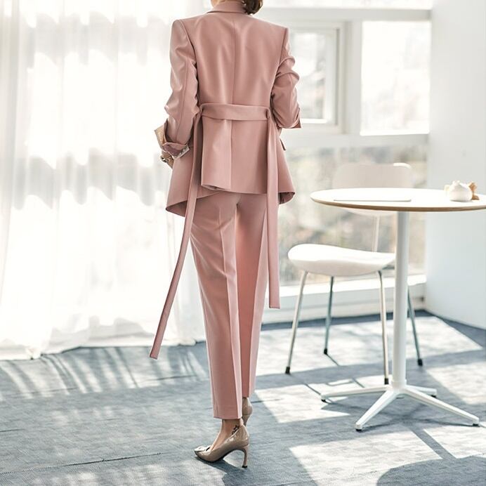 メリハリのあるウエストマーク仕立てのレトロなパンツスーツセットです。