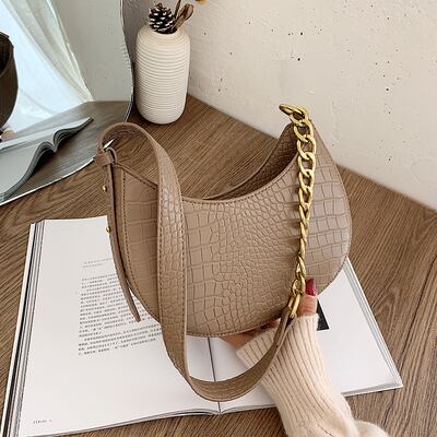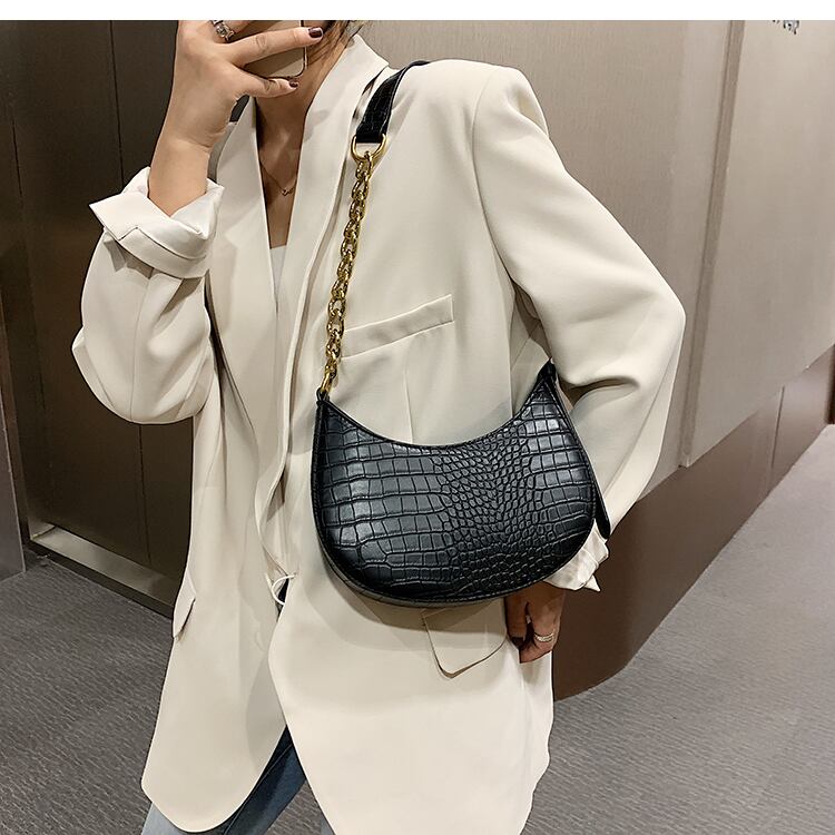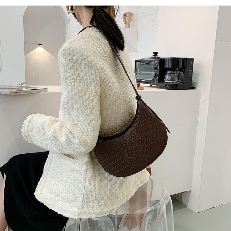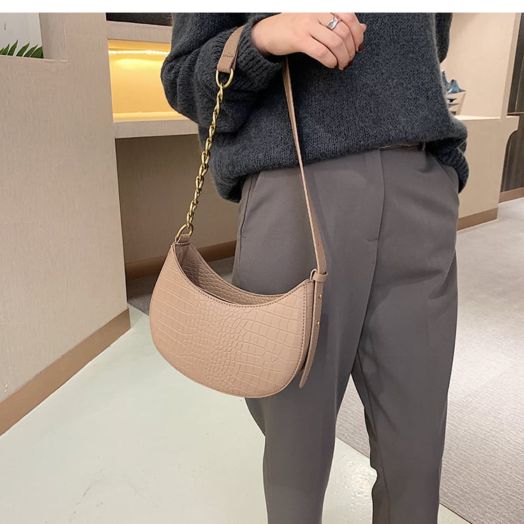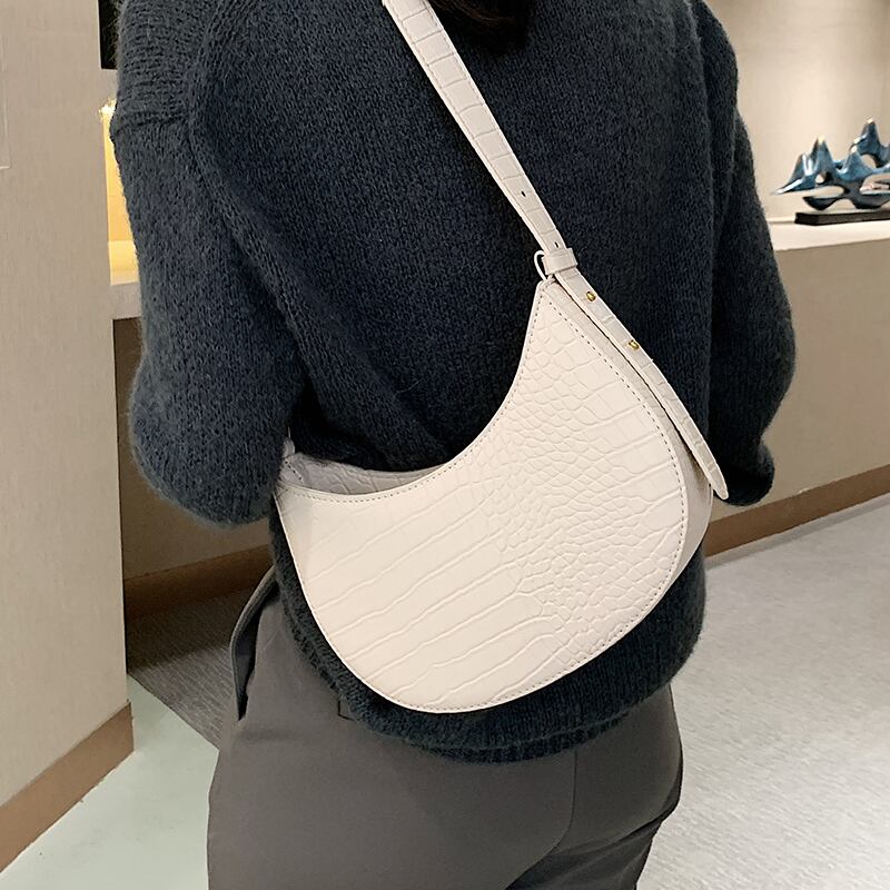 存在感のあるクロコ型押しワンショルダーバッグ。