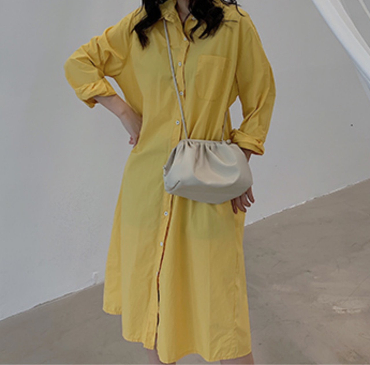 秋カラーがお洒落でフェミニンなコーディネートのワンポイントとしておすすめなバッグ。
