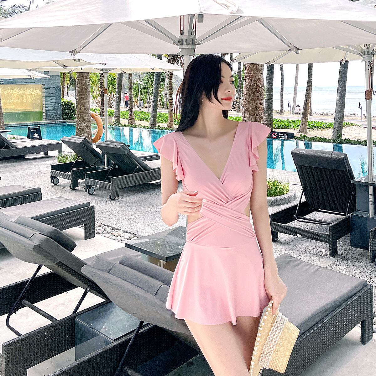 ワンピースでも胸下部分が開いていてビキニにも見えるデザインがおしゃれな一着です。