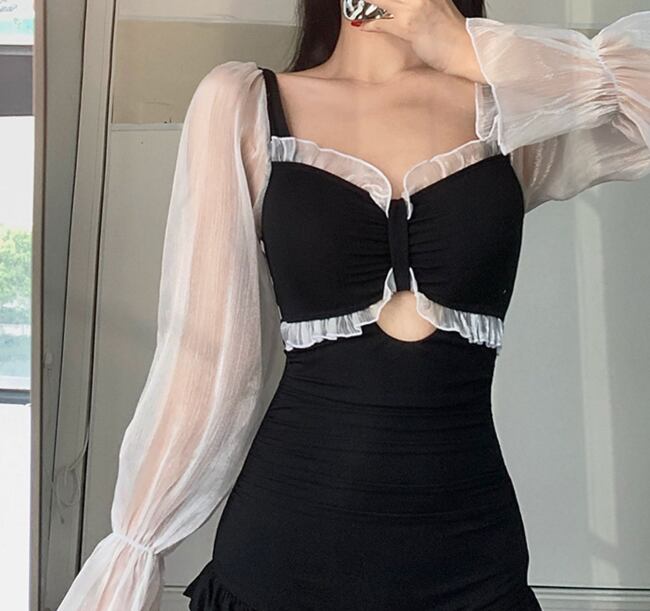 透け感たっぷり大人フェミニンで女性らしい水着。