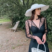 透け感のある水玉模様レースが可愛らしさを引き出してくれます。