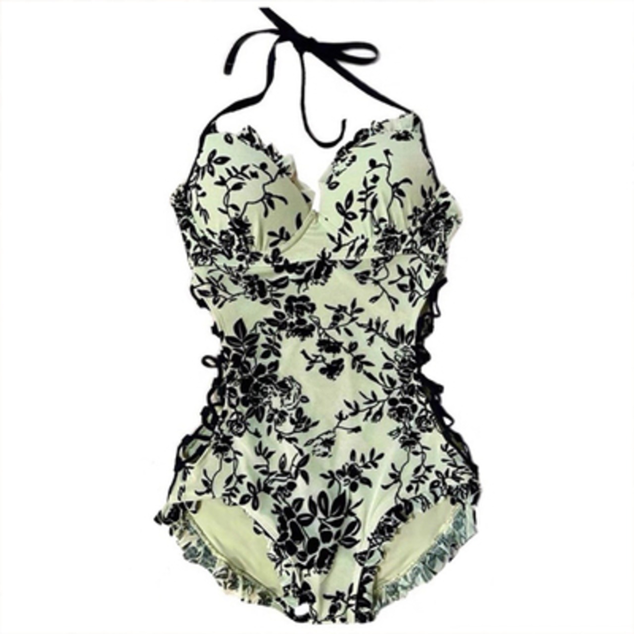 花柄デザインのホルダーネックモノキニビキニ。