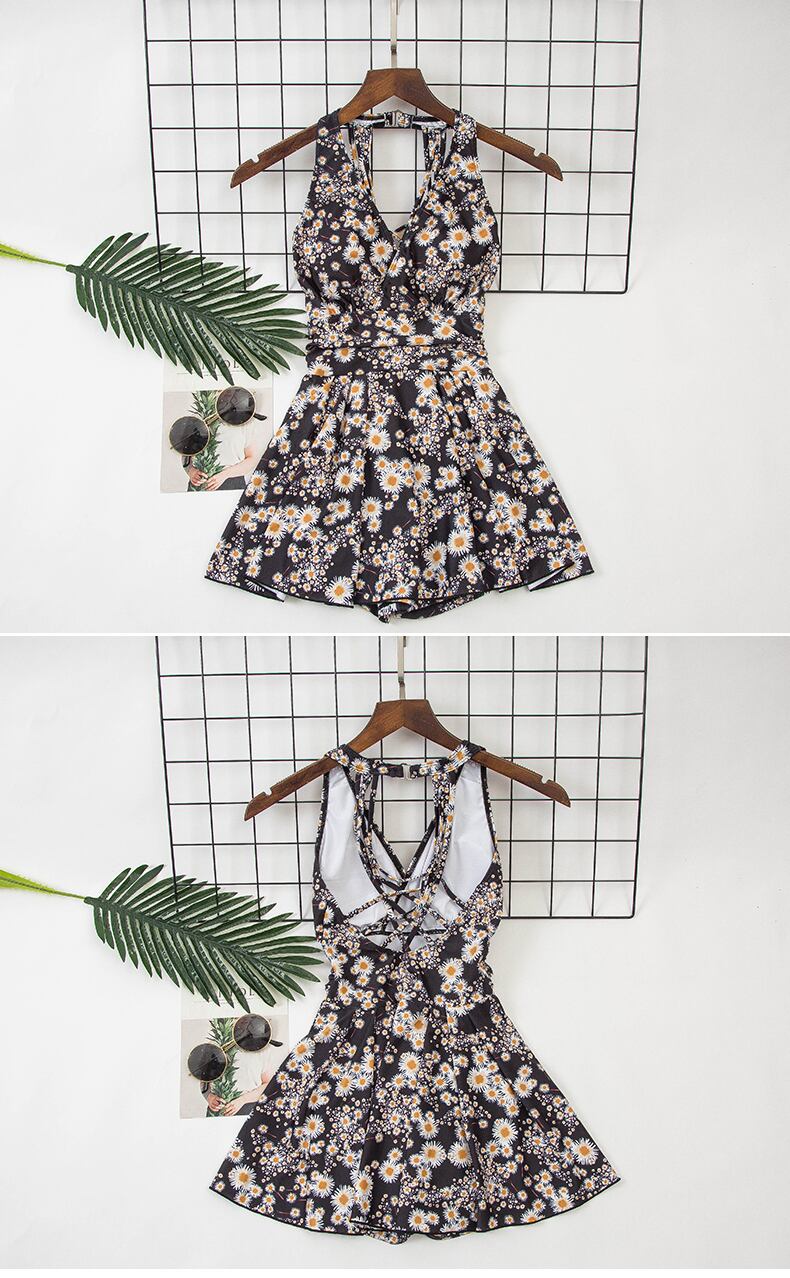 水着 スイムウェア ワンピース水着 パッド付き レースアップ ウエストデザイン かわいい 大人可愛い シンプル カジュアル 華やか 大人っぽい おしゃれ 女っぽ 柄 花柄 フラワー 10代 20代 体系カバー スタイルアップ インスタ映え M L XL 2XL ブルー ブラック