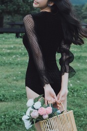 透け感のある袖のデザインが大人っぽいワンピース水着。